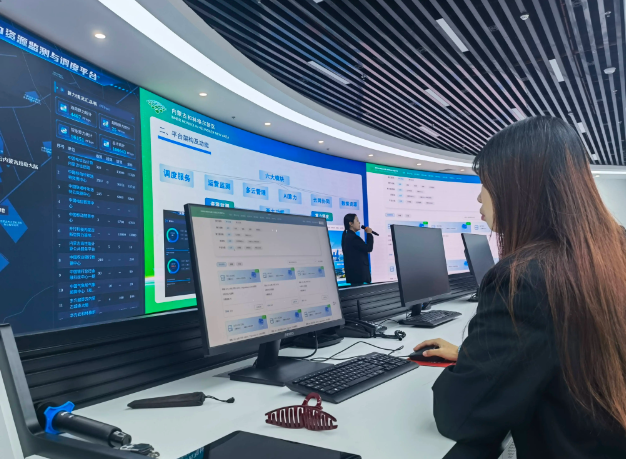 內蒙古數據交易中心大樓里,工作人員正在介紹算力交易的情況。