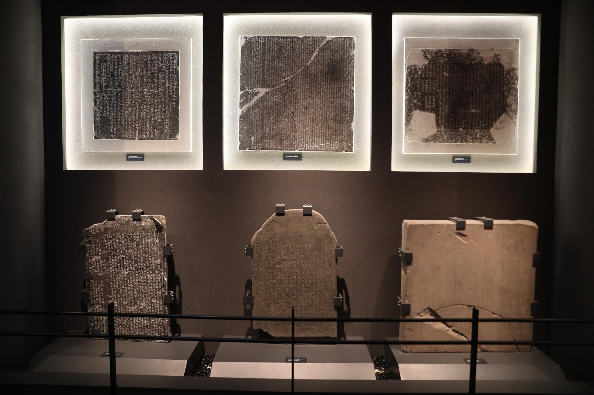 相比之下,耶律祺家族墓的核心價值在于其文字資料。該墓出土的契丹大字墓志刻于遼天祚帝乾統(tǒng)八年(1108年),志石刻契丹大字46行,總計約2930余字,除80余個殘缺字外,尚存2840余字,是考古已發(fā)現(xiàn)的所有契丹大字石刻中字?jǐn)?shù)最多的一件。