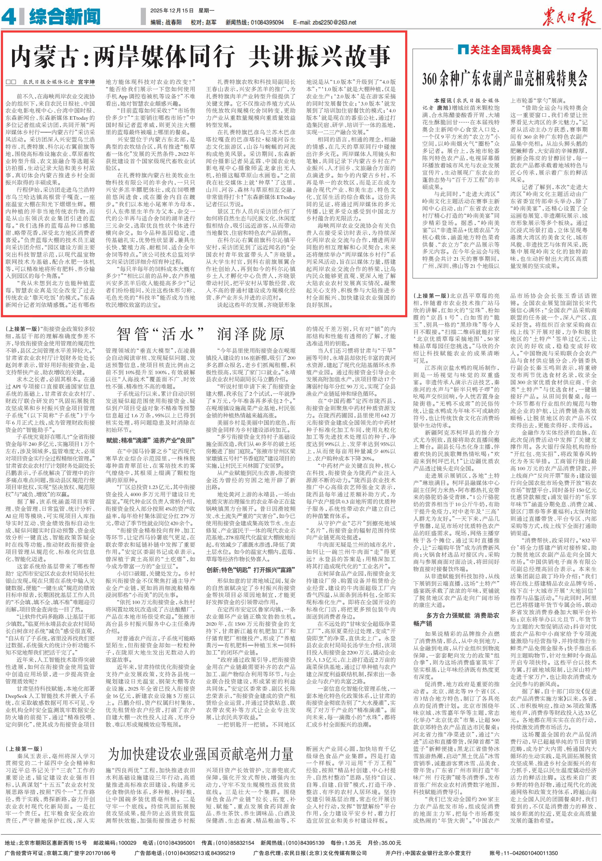 2025年12月15日《農(nóng)民日報》第4版刊發(fā)了《內(nèi)蒙古:兩岸媒體同行 共講振興故事》的文章,報道了前不久,在海峽兩岸農(nóng)業(yè)交流協(xié)會的組織下,來自農(nóng)民日報社、中國農(nóng)業(yè)電影電視中心、臺灣中國時報、東森新聞臺、東森新媒體ETtoday的多位記者組成采訪團,共同開展“兩岸媒體鄉(xiāng)村行——內(nèi)蒙古行”采訪采風活動。兩岸媒體人用鏡頭和筆觸,共同記錄下內(nèi)蒙古鄉(xiāng)村在產(chǎn)業(yè)振興、人才回鄉(xiāng)、文旅融合方面的點滴進步。這份共同的見證,將通過兩岸媒體的多元傳播,讓更多受眾感受到中國北方鄉(xiāng)村蘊含的無限活力。