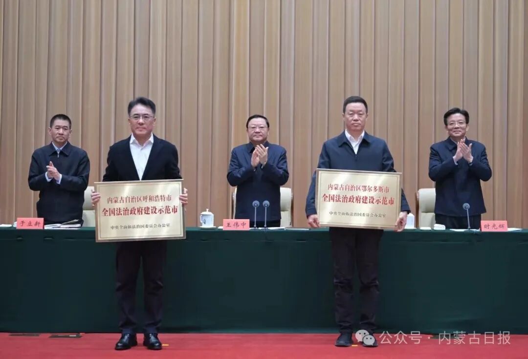 自治區(qū)黨委副書記、自治區(qū)黨委全面依法治區(qū)委員會(huì)副主任時(shí)光輝主持會(huì)議。自治區(qū)黨委、人大常委會(huì)、政府、政協(xié)有關(guān)領(lǐng)導(dǎo)同志和法檢“兩長(zhǎng)”出席。會(huì)議為自治區(qū)獲評(píng)第三批全國(guó)法治政府建設(shè)示范地區(qū)的呼和浩特市、鄂爾多斯市授牌。
