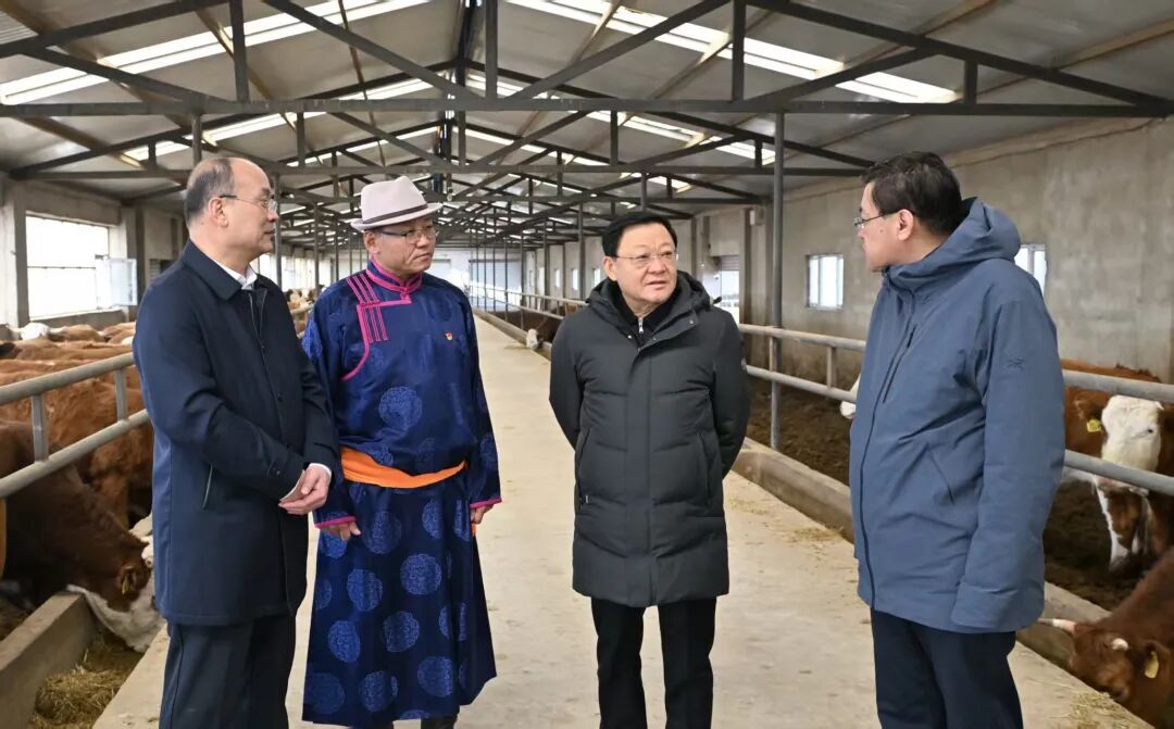在蘇尼特左旗浩博爾畜牧業(yè)專業(yè)合作社、阿巴嘎旗伊克塞畜牧服務(wù)有限公司和錫林浩特首放食品加工有限公司、大莊園肉業(yè)有限公司、愛味客(內(nèi)蒙古)食品有限公司,王偉中詳細了解了奶食品生產(chǎn)經(jīng)營、獸醫(yī)機構(gòu)社會化服務(wù)、牛羊屠宰加工生產(chǎn)運營、馬鈴薯精深加工等情況,鼓勵經(jīng)營主體重質(zhì)量、創(chuàng)品牌、延鏈條,做優(yōu)農(nóng)畜產(chǎn)品精深加工和綠色有機品牌,提高產(chǎn)品市場競爭力和占有率。他強調(diào),畜牧業(yè)是內(nèi)蒙古的優(yōu)勢特色產(chǎn)業(yè),要建設(shè)好國家重要農(nóng)畜產(chǎn)品生產(chǎn)基地,加強良種繁育,開展農(nóng)牧機械和獸醫(yī)裝備研發(fā)應(yīng)用,完善企業(yè)和農(nóng)牧民利益聯(lián)結(jié)機制,實現(xiàn)草原增綠、產(chǎn)業(yè)增效、群眾增收多贏。