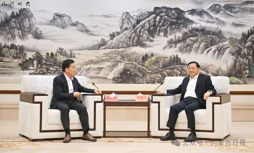 4月16日下午,自治區(qū)黨委書記、人大常委會主任王偉中在呼和浩特會見明陽新能源投資控股集團(tuán)有限公司黨委書記、董事長張傳衛(wèi)一行。草原云·內(nèi)蒙古新聞網(wǎng)記者