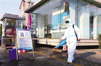 “您好,這是小區(qū)住戶購買的食品,可以幫忙送進(jìn)去嗎?”“沒問題,我們對包裹消殺后給您送進(jìn)去?!痹谛^(qū)門口,城管的工作人員將經(jīng)過消殺的包裹送到了警戒線內(nèi),再由物業(yè)保安送到小區(qū)內(nèi)部。“目前小區(qū)處于封閉狀態(tài),我們在小區(qū)門口設(shè)置了三道防線,門口警戒線、消殺區(qū)域及居民取物資警戒線,所有進(jìn)出入小區(qū)的人員物品都要進(jìn)行防疫消殺。同時(shí)我們也按照疫情防控指揮部的統(tǒng)一要求,對小區(qū)內(nèi)部每天定時(shí)進(jìn)行消殺和垃圾清運(yùn)工作。”橋華世紀(jì)村·紫華園小區(qū)富華物業(yè)的保安隊(duì)長趙文忠向記者介紹。